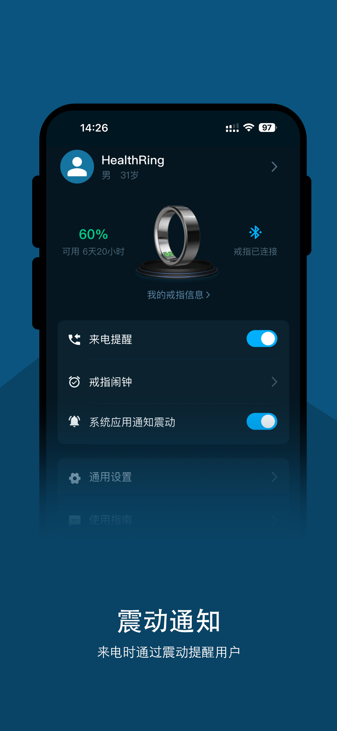 戒指绑定或解绑、恢复出厂设置、智能触控切换、低电量、收到通知时,短震动提醒